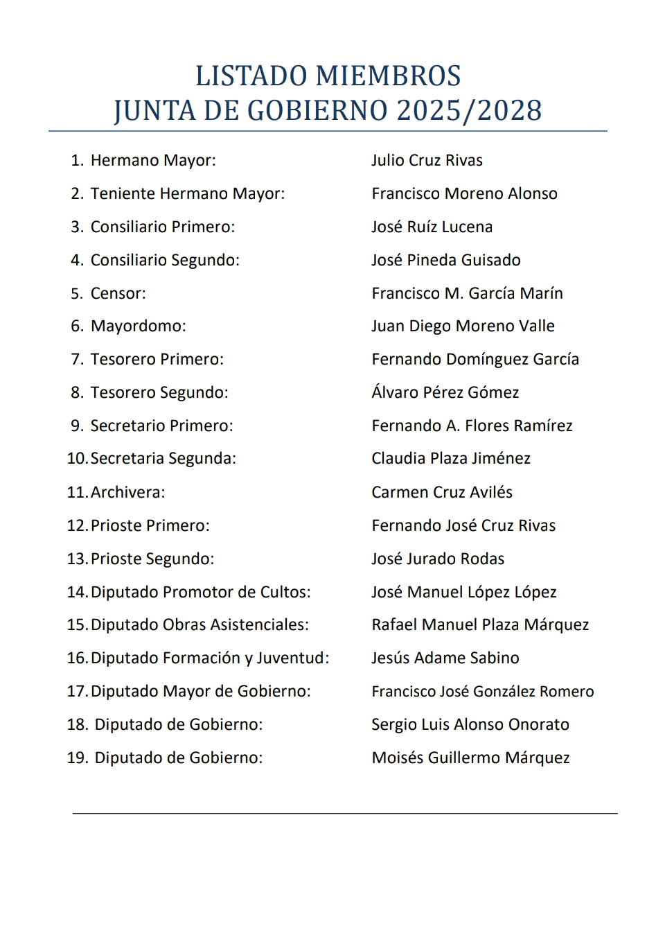 A la terminación de dicho Cabildo se dio a conocer la lista con el resto de componentes de la Junta de Gobierno siendo la que sigue: