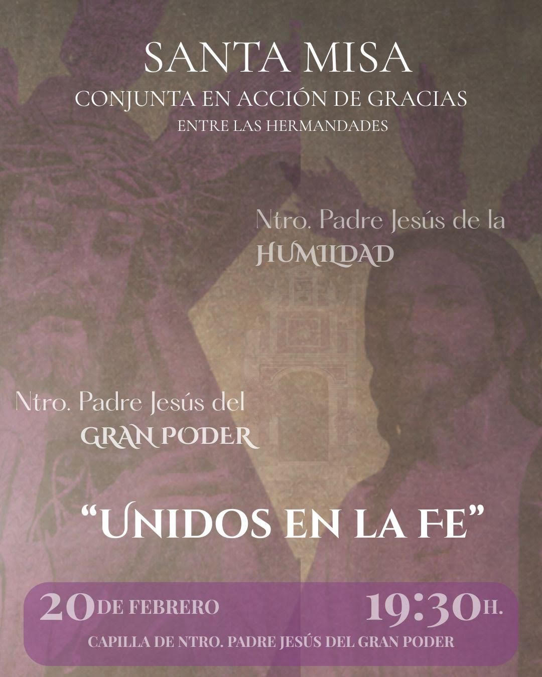 El próximo viernes 20 de febrero a las 19:30 horas celebraremos la Santa Misa en fraternidad junto a la Hermandad de Humildad y Pilar en un encuentro de unión y convivencia entre ambas corporaciones.